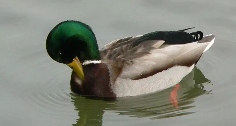 2005年2月6日北京北海公园湖内的绿头鸭,可以清晰地看到它的尾羽末端是卷曲上翘的。图片:用心阁 / zh.wikipedia