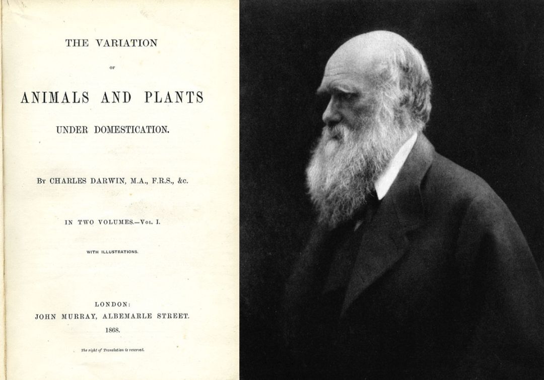 于1868年出版的《动物和植物在家养下的变异》和彼时的达尔文。图片:Charles Darwin & Julia Margaret Cameron / wikipedia