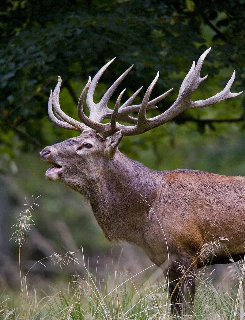 长有鹿角的欧洲马鹿。雄鹿常常通过漂亮的鹿角和打斗行为来吸引雌鹿的注意。图片:Bill Ebbesen / en.wikipedia