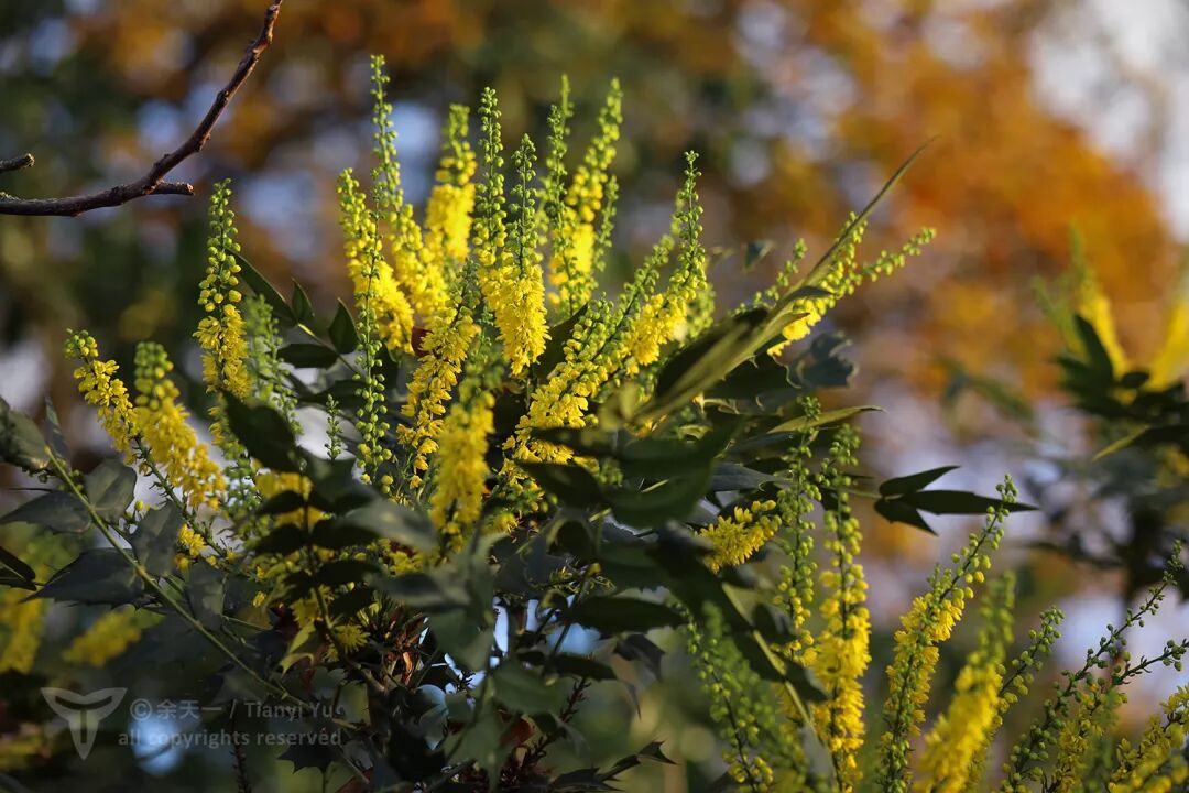在国内江浙一带,山茶属、十大功劳属、迎春和蜡梅比较集中的花期都是春节前后,但是在英国,它们等不到春天就迫不及待地开花了。山茶和茶梅花期相近,部分品种也长得有些相似。区别它们其实很容易:山茶的花是整朵掉落的,捡起掉落的花会发现花瓣和雄蕊基部全部合生在一起,而茶梅的花瓣是零散掉落的。