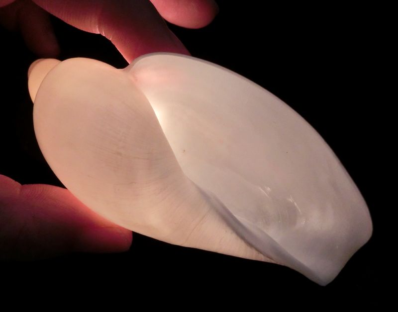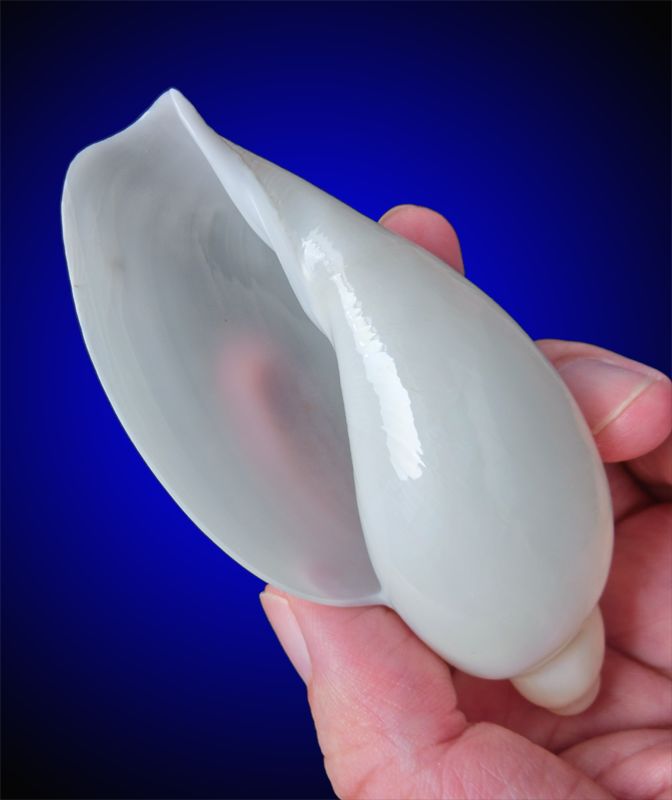 贝壳本来不透明的东沙谷米螺,白化个体的贝壳却是半透明的晶莹质感,在日光或灯光下美不胜收。如此美白细腻的大型贝壳,的确不多见。