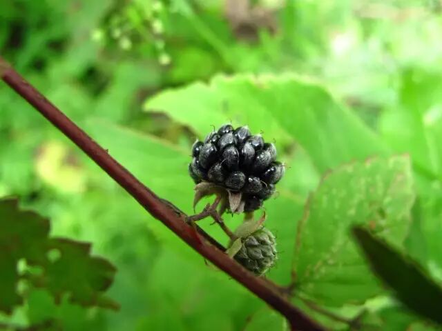 很多悬钩子的果实彻底成熟后是黑色的,这样才够甜,红色的时候比较酸。黑莓Black berry即得名于此。图片:wiki commons