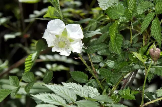 喜阴悬钩子R. mesogaeus的花蕾和果。《中国植物志》说这个种果实无毛,但也不尽然,上图就是个非典型。依海拔不同,果实成熟期在7~8月间。摄影:顾有容