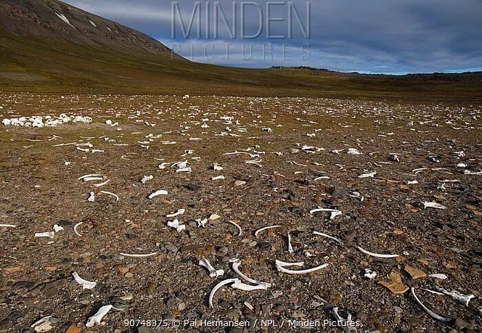 挪威斯瓦尔巴德岛的许多海滩上还能见到一百多年前宰杀后被丢弃的海象骨骼。 图片:Pal Hermansen / Minden Pictures