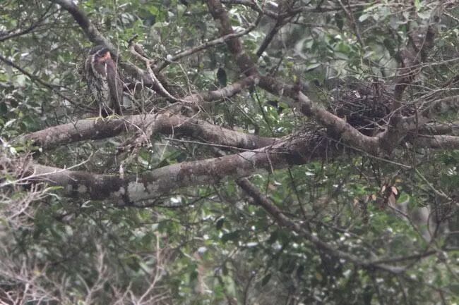 海南鳽(左侧)和它在树上的巢(右侧)。图片:James Eaton / hbw.com