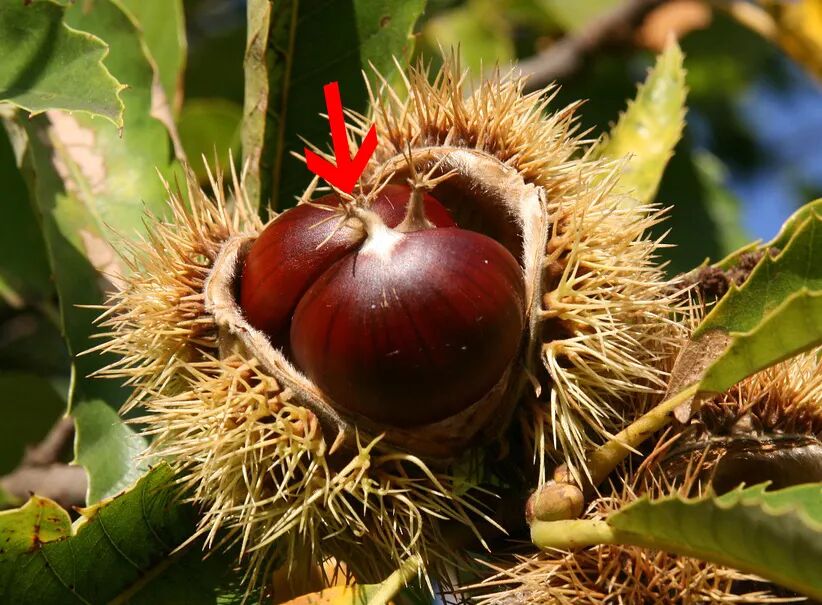 夏末秋初,欧洲七叶树的果实成熟,绿色有刺的外壳裂开,会露出里面有光滑棕色种皮的种子。这个带刺外壳和棕色内壳的组合,乍一看非常像栗子,而且种子的个头还比栗子大。然而这个“栗子”是有毒的,白色种仁里含有皂苷类和葡萄糖苷类物质,还好它味道苦涩并不好吃,如果不小心误食一般也不会吃太多。