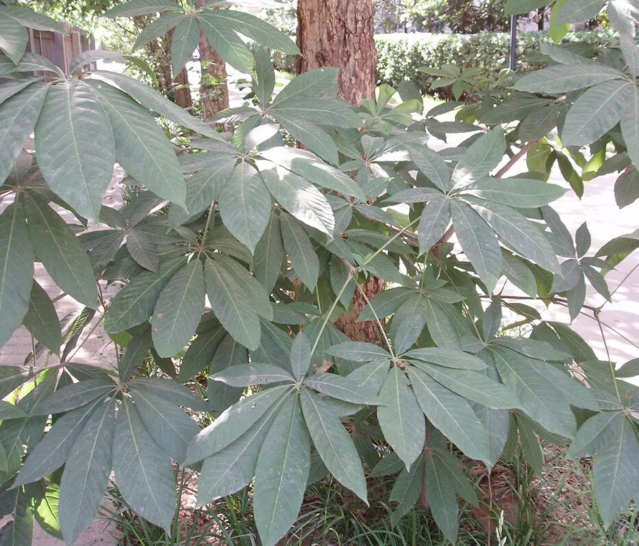 欧洲七叶树(左)与七叶树(右)的叶片。图片:Alvesgaspar / wikimedia
