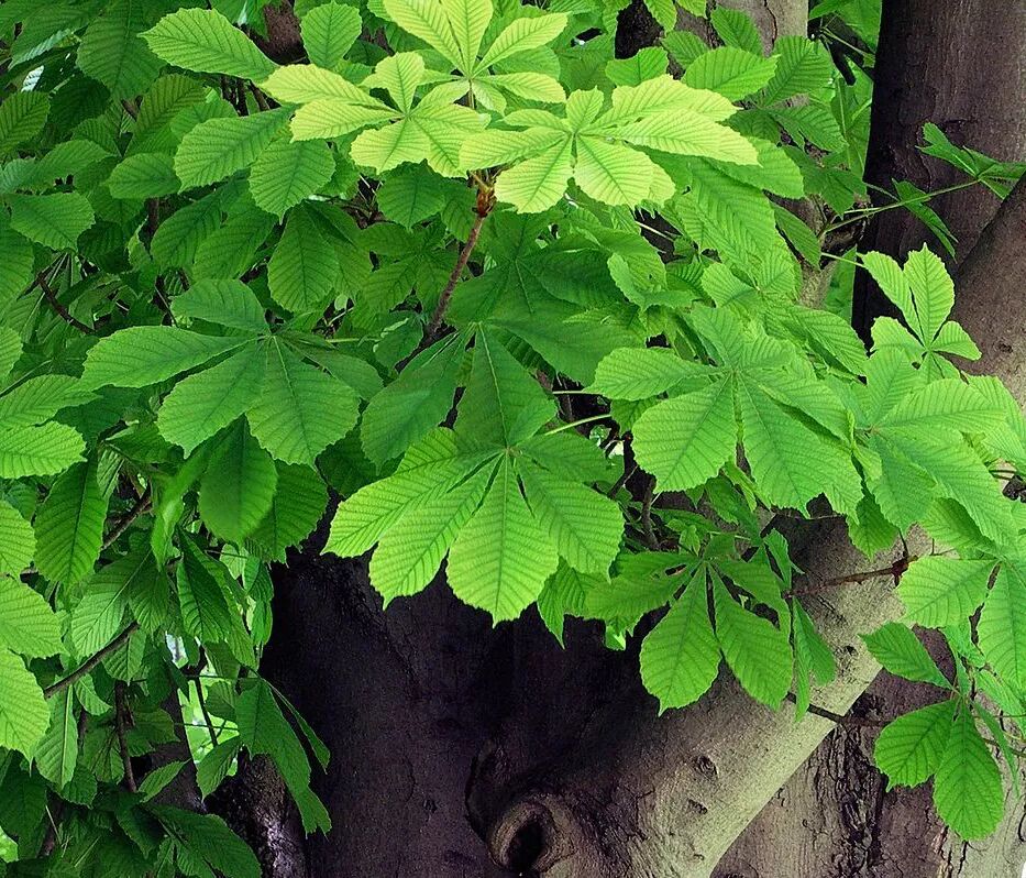 和中国原产的七叶树(A. chinensis)一样,欧洲七叶树的叶片也是掌状复叶,不过它的小叶边缘有非常明显的粗锯齿,而中国的七叶树和很多其它七叶树属种类的小叶都是全缘的。