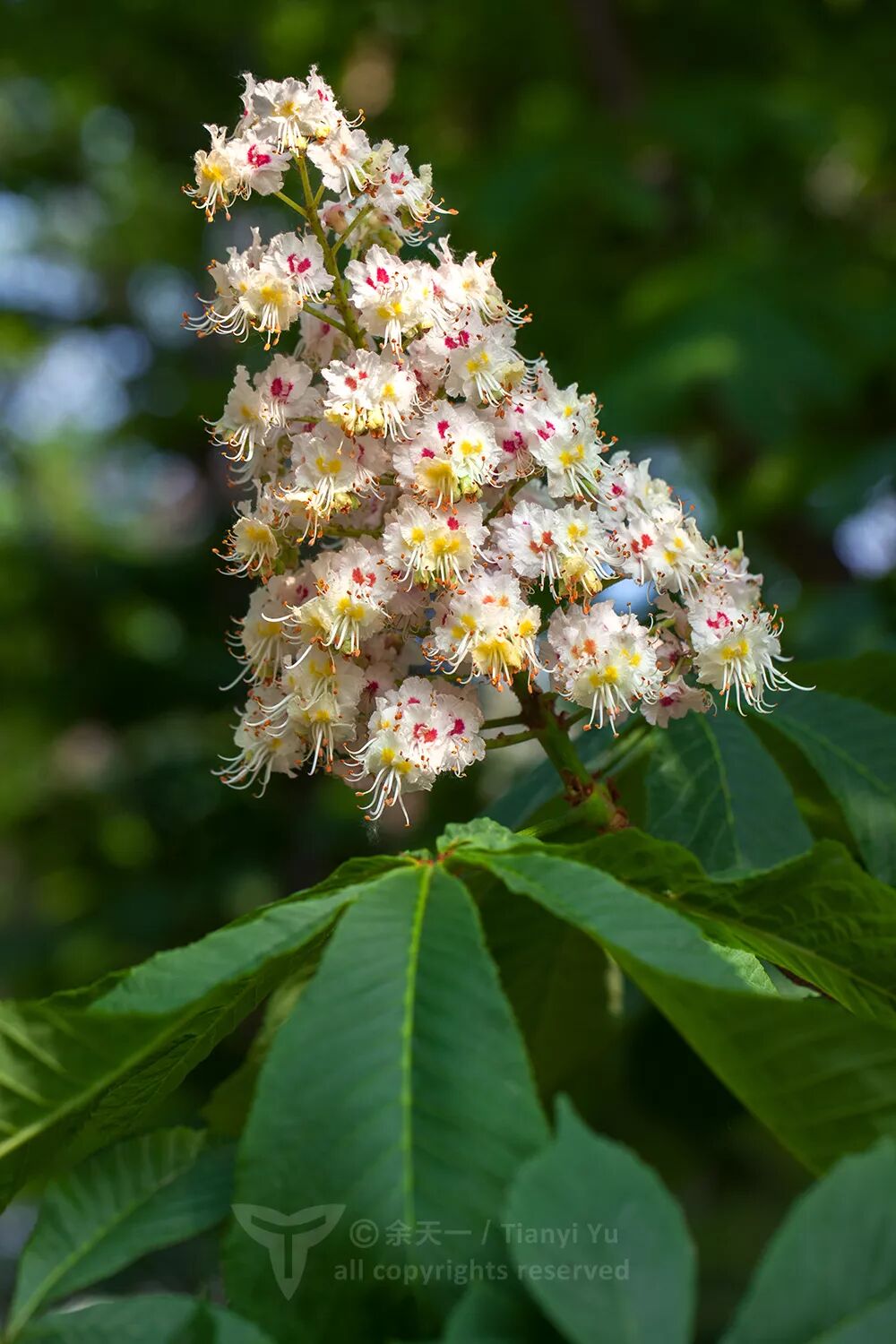 欧洲七叶树宝塔一样非常壮观的花序。图片:余天一