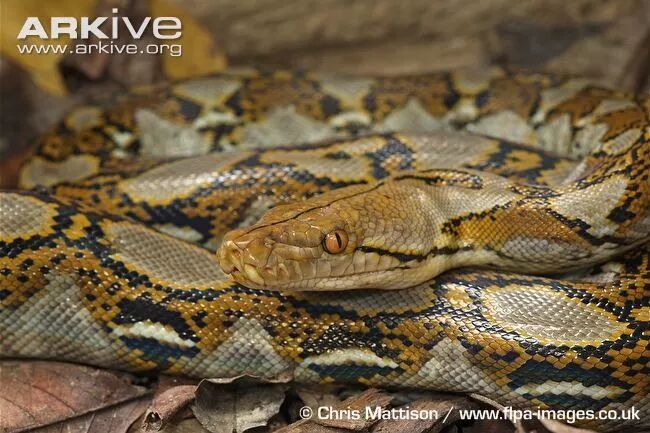 盘起来的网纹蟒。图片: Chris Mattison / www.flpa-images.co.uk