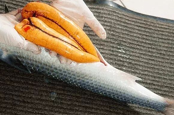 鲻鱼活鱼取籽(卵巢) 。图片:wikiwand