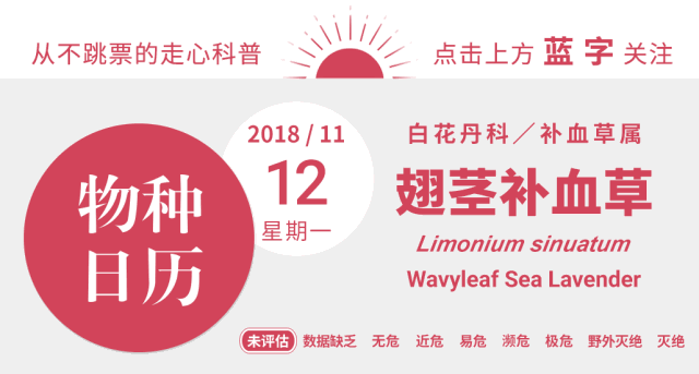 物种日历曾提到过翅茎补血草(Limonium sinuatum),不过那是在辨别“真假勿忘我”的文章里。去年在写勿忘我(Myosotis sylvatica)的时候,我拎出翅茎补血草“指责”了一番,叹息原本娇小可爱的勿忘我怎么会是一种耐盐耐旱且耐折腾的“假花”,这种“糙汉”怎么能冠上那么隽永的名字。