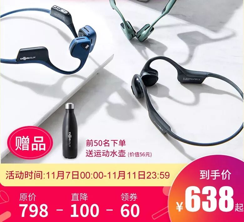 列这么多理由,都不是最重要的,因为这次双十一骨传导耳机直接降价,减价后还能用优惠券!