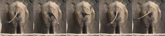 大象用鞭子一样的尾巴轰赶蚊蝇(每张图片时间间隔0.23秒)。图片:胡立德团队