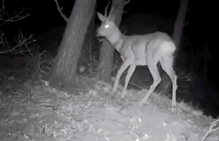 这是西伯利亚狍[páo],拍到它也令我们像中了大奖一样兴奋。看到它,我们就有了看到豹子的希望——豹子的“菜单”上就有它。