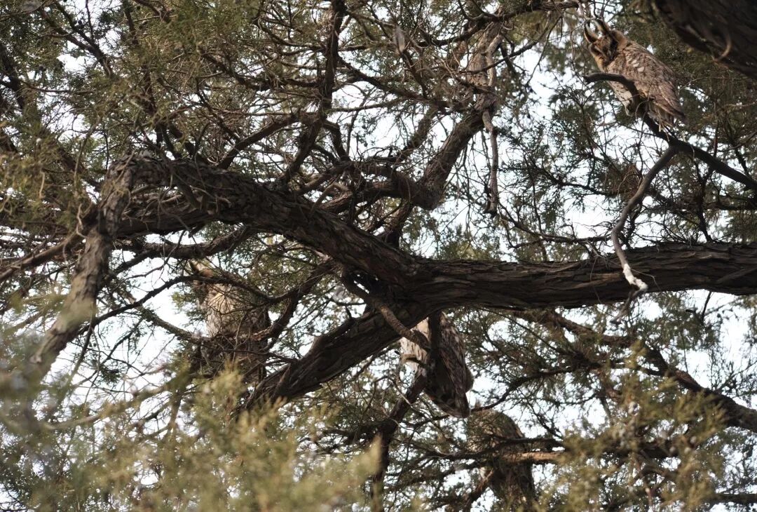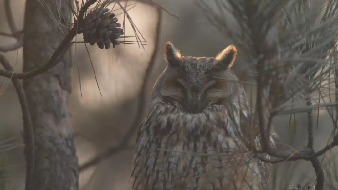 再举一个例子。就在我们放归灯灯的地方,当时有一片油松林,一个越冬的长耳鸮种群正在那里休息。