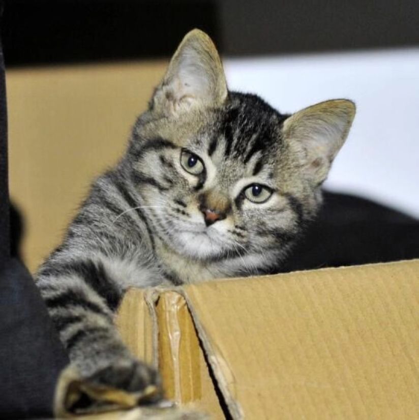 下图左边这只猫是猫盟当家小臭,右边这只是老虎。