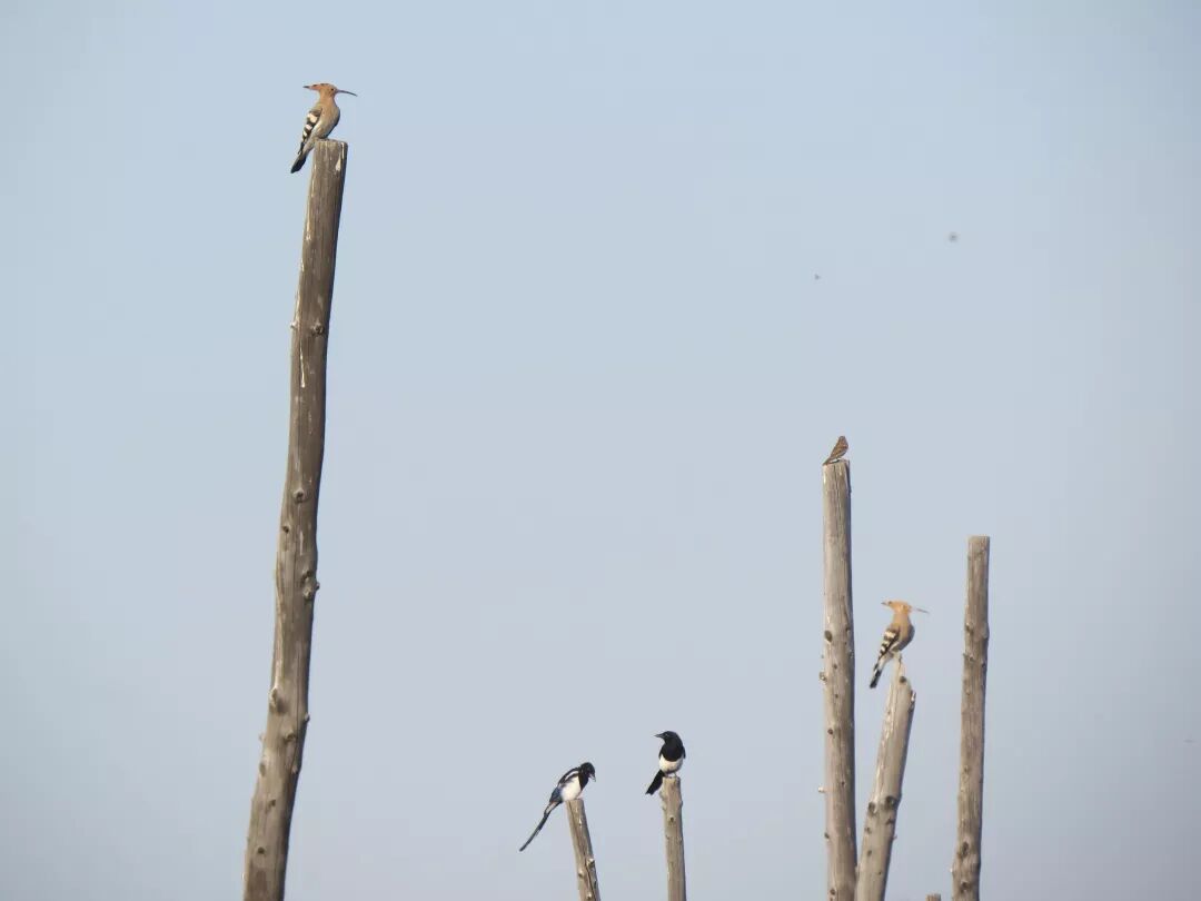 天津北大港,不迁徙的戴胜、喜鹊和麻雀则显得非常悠闲。图片:南川木菠萝