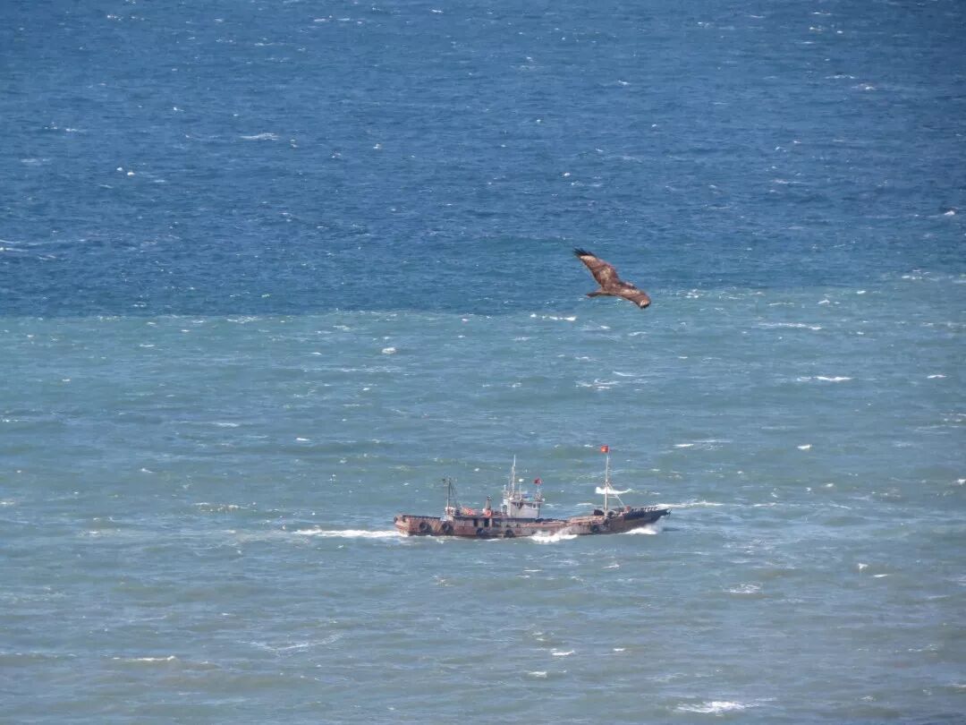 大连老铁山,迁徙时飞过海船上方的普通鵟。图片:南川木菠萝