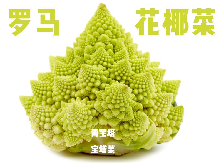 花菜家族里也有颜值爆表的罗马花椰菜。罗马花椰菜长得像是数学中的分形结构,每一个小的侧芽都可以看成是更大的侧芽的复制品。