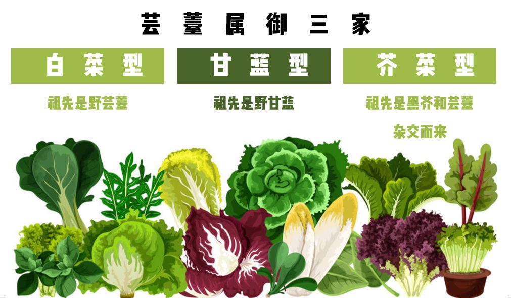 我们平时在菜市场上能看到的蔬菜中,约有50%~67%的蔬菜都属于一个属——芸薹[tái]属,它可以说是当之无愧的菜市场的统治者了。芸薹属的植物又分为白菜型、甘蓝型和芥菜型三大类,它们也各有各的特点。