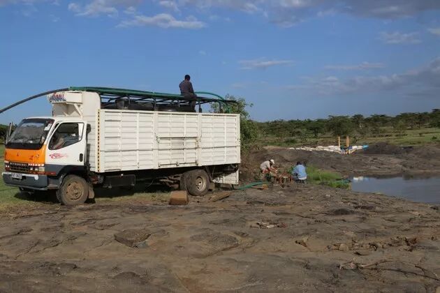 将河马粪水转移到人工池塘。图片:Chris Dutton