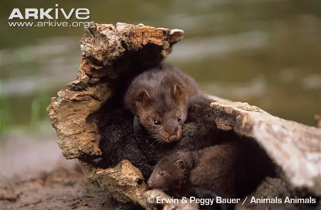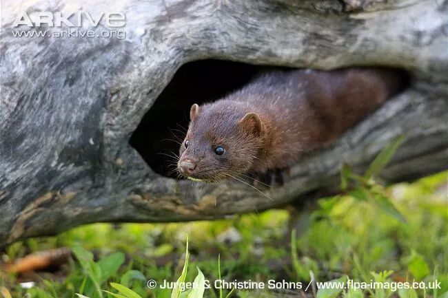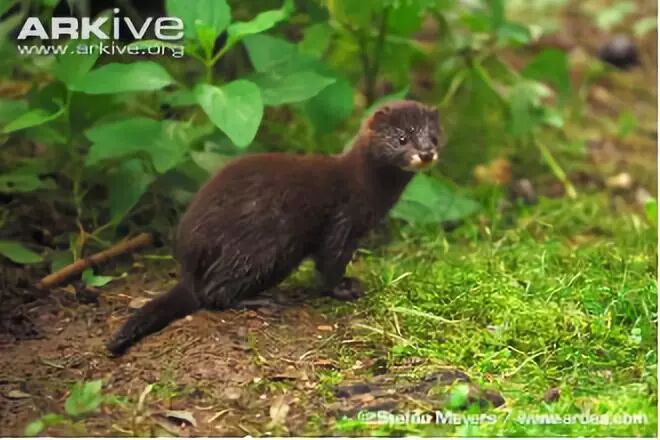 顾名思义,美洲水貂喜欢水,细长呈流线型的身体钻洞游泳都很合适 。鼬属中还有个“叛徒”欧洲水貂,外形与美洲水貂非常相似,也适应了半水生的环境,但是体型更小。美洲水貂全身深褐色,只有下巴是白色的,而欧洲水貂常常有白色的上唇,可以大致区分。