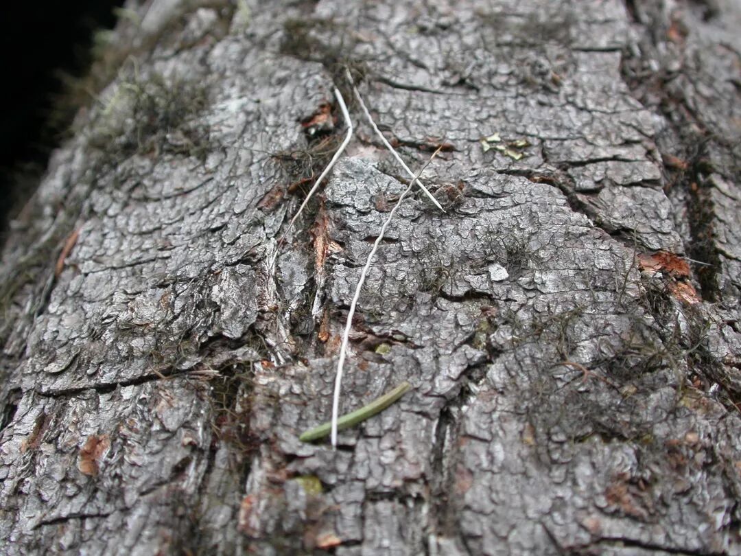 我把铁丝剪断装进包里,继续沿路查看,发现铁丝高压线旁边是一条野生动物走出的兽径。兽径旁的倒木上散落着一些波浪形的坚硬毛发,阴坡树下还有几堆一头尖一头圆、形似米粒的有蹄类动物粪便——这些都是典型的林麝(Moschus berezovskii)粪便和毛发的识别特征。
