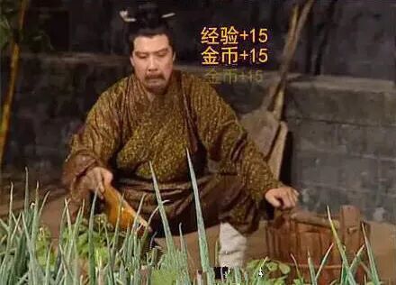 刘备浇葱长经验。(画面最前方的就是葱)原图:94版《三国演义》