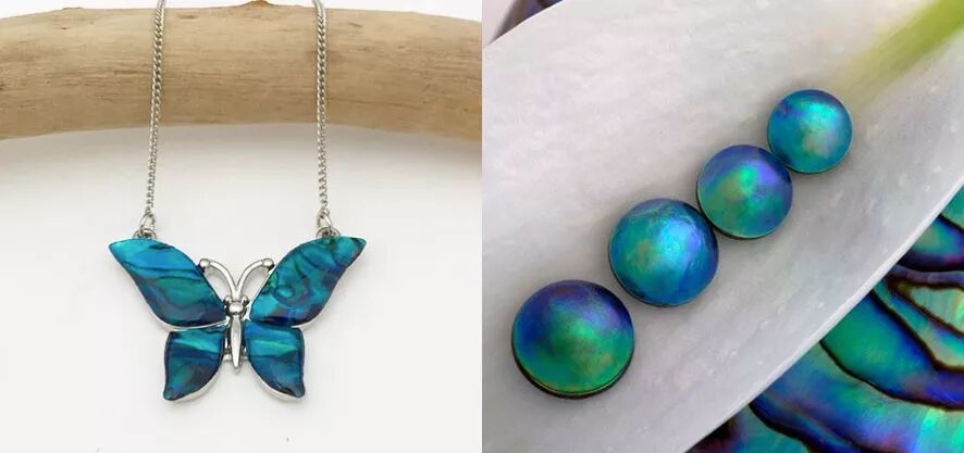 黑足鲍壳(左)与珍珠(右)制作的首饰。图片:mak3gifts.com.au;rebrn.com