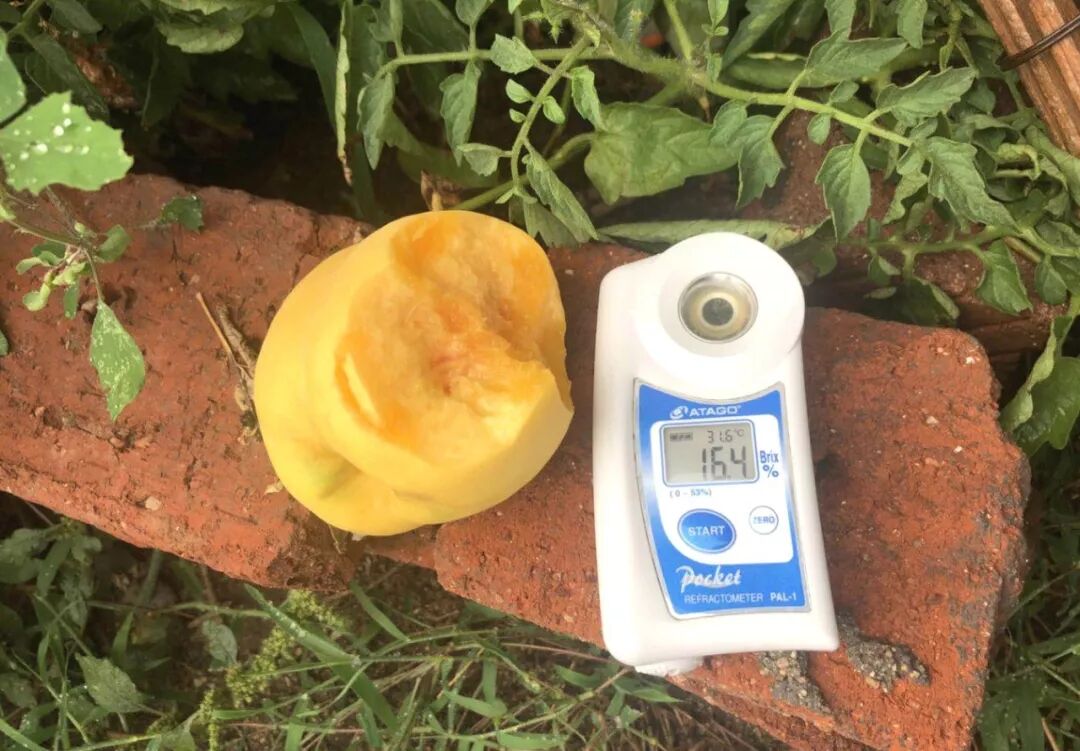 锦绣黄桃的含糖量平均在11%~14%,而我们找到的高山黄桃含糖量甚至达到了16%~18%,要知道常见桃子的含糖量范围只有9%~12%左右,高山黄桃的含糖量已经和荔枝差不多了!这些数据直观的表现就是高山黄桃吃起来特别甜,这种甜不是单纯的甜腻,而是均衡了桃子特有的香气,咬一下口齿留香,忍不住就会咬第二口第三口......