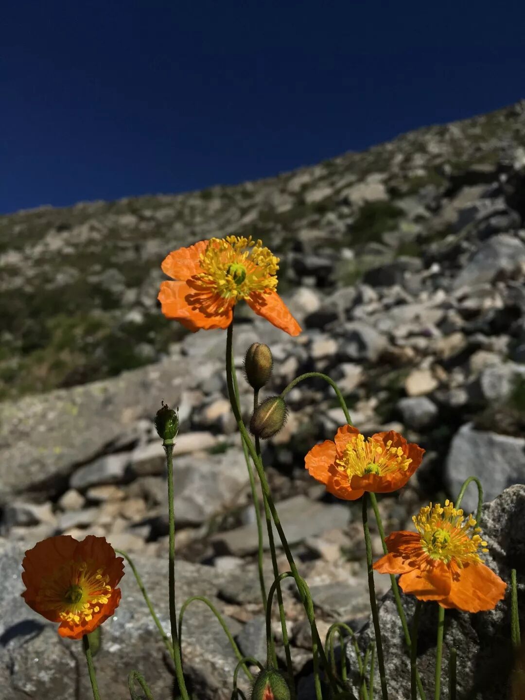 我一直感叹人类能够通过黄色的野罂粟,培育出自然界没有的橙红色和粉色系冰岛罂粟。然而当我站在太白山顶,看到一丛摇曳在山风中的橙红色野罂粟时,我觉得自己与大自然相比,还是太幼稚了。