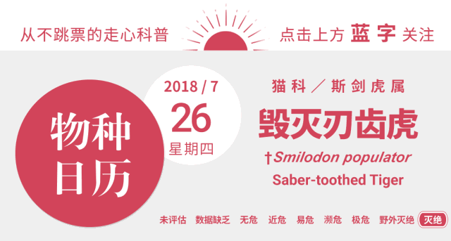 此后,它们在北美演化成了体型大一号的致命刃齿虎(S. fatalis),而在南美演化出的是体型更为巨大的毁灭刃齿虎。这两者一直生存到距今一万年的末次冰川期,是“冰川时代”的著名物种。