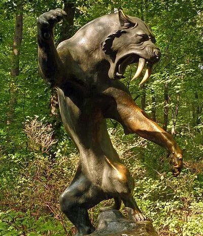 柏林动物园中的毁灭刃齿虎雕像,仿佛带我们重回了那个刃齿虎称霸草原的时代。雕塑家:Erich Oehme;图片:Lotse / wikimedia