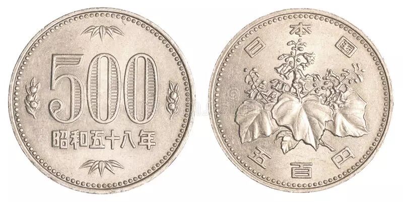 500日元硬币背面的图案是毛泡桐。图片:Asafta / Dreamstime.com