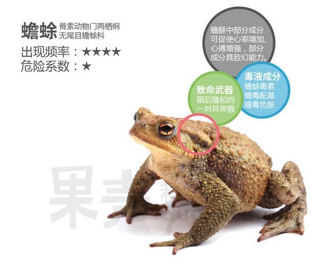 在古代,蟾蜍是一种让人爱恨交加的动物。说恨,蟾蜍位列“五毒”之中,“癞蛤蟆想吃天鹅肉”也刻画了人们对蟾蜍的鄙夷;说爱,人们又把蟾蜍看做吉祥的符号,尤其是三条腿的“金蟾”,被视作招财进宝的象征。不过不管怎么看,癞蛤蟆有毒是个共识。小时候老人们常说癞蛤蟆撒的尿会让人长癣,而摸癞蛤蟆会让人长像癞蛤蟆一样的疙瘩,以此警告还是熊孩子的我们。那么蟾蜍的毒有这么厉害吗?