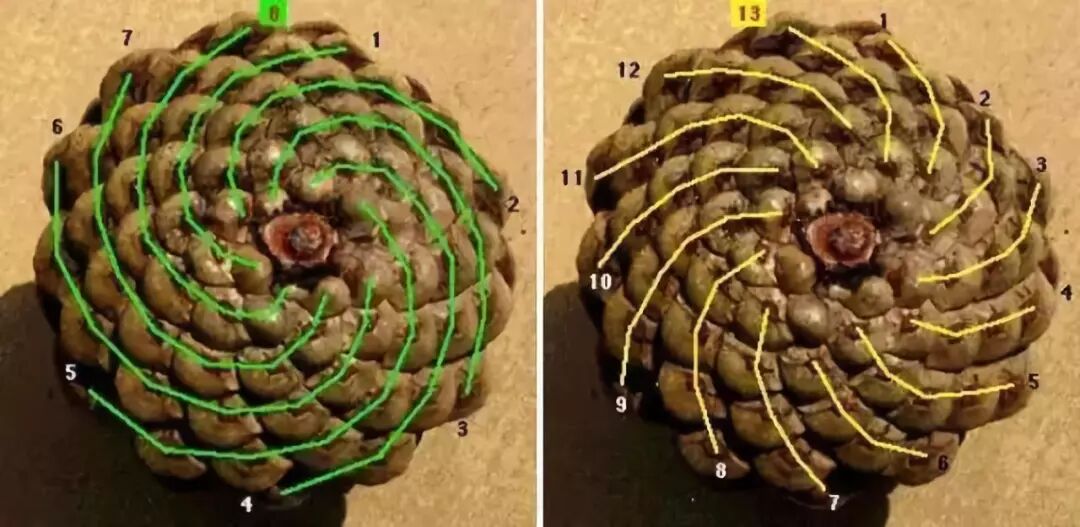 松塔的螺线:左旋13,右旋8。图片:pinterest.com