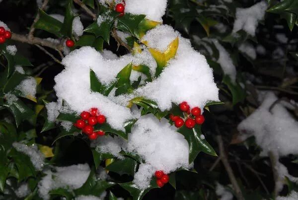 除了大叶冬青,冬青属中还有许多种类可用来观赏,它们大多具有四季常青的革质叶片和秋冬季鲜红色的果实。目前园林中常用的有枸骨(I. cornuta)及其品种无刺枸骨(I. cornuta 'Fortunei')、枸骨叶冬青(I. aquifolium)、冬青(I. chinensis)、铁冬青(I. rotunda)等。这类植物常年均是浓绿的叶片,花小且为黄绿色,就算开花也吸引不到人们的注意,基本属于没人注意的背景植物,但果实成熟后,鲜红色的果实常给人眼前一亮的感觉。