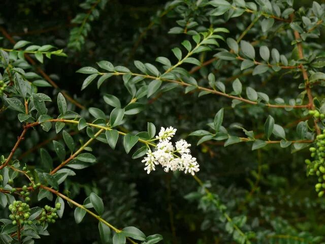 木犀科的丽叶女贞,从花到叶,和冬青科的植物们长得很不一样。图片:helicongus / flickr