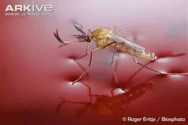 成虫破蛹而出后,在水面稍事休息,就可以去做爱做的事了。只有雌性的蚊子才会吸血,它们需要至少一顿鲜血才能开启卵黄合成通路,后代所需要的营养也要从血液中获取。雄性则不吸血,它们的口器和触角都毛茸茸地相当花哨,可以凭借这点轻松地将雌雄区别开来。