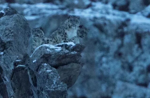 如果这种行为真的普遍存在,那么雪豹的家庭可能更像狮子,家庭成员之间有紧密的配合:雄性负责跑马圈地,维护家域,帮助妻儿。这样的推论,需要更多、更充实的证据来证明。志愿者们依旧在观察。