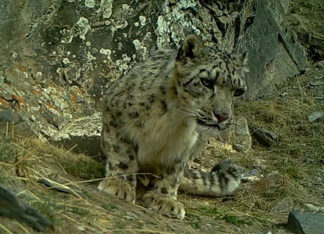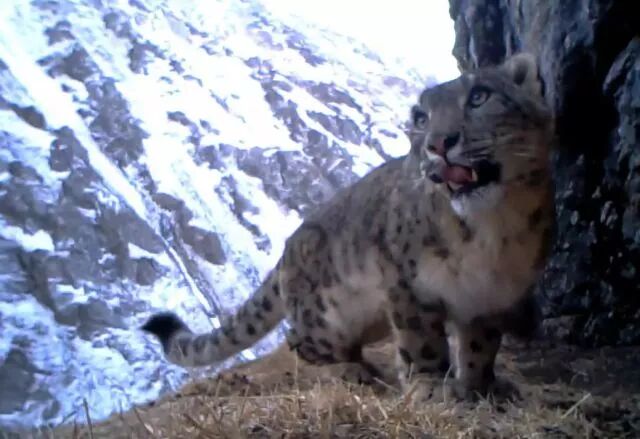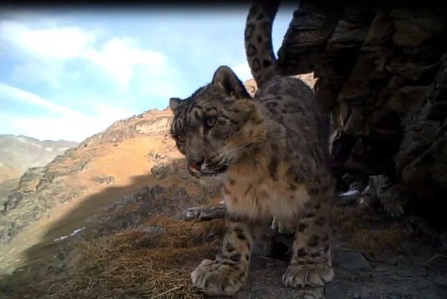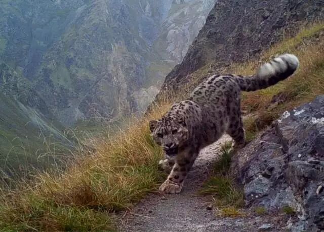 如果雪豹的家庭这么紧密,那么,一只公豹和自己的孩子前后脚出现在同一个相机前,也就不那么让人惊奇了。