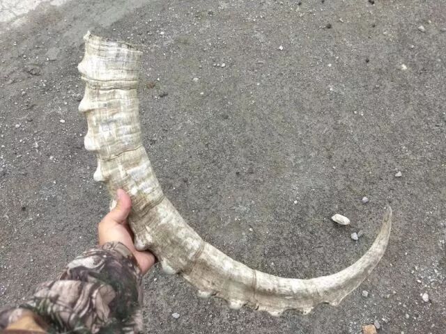 河谷里巨大的北山羊角,我们一行人在那里驱车行进了三小时,中途停下来随便转转,就捡到了三对北山羊角。