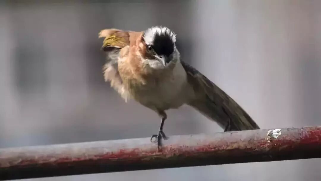 在我家窗户外面理翅膀理得不亦乐乎无视人类的白头鹎。