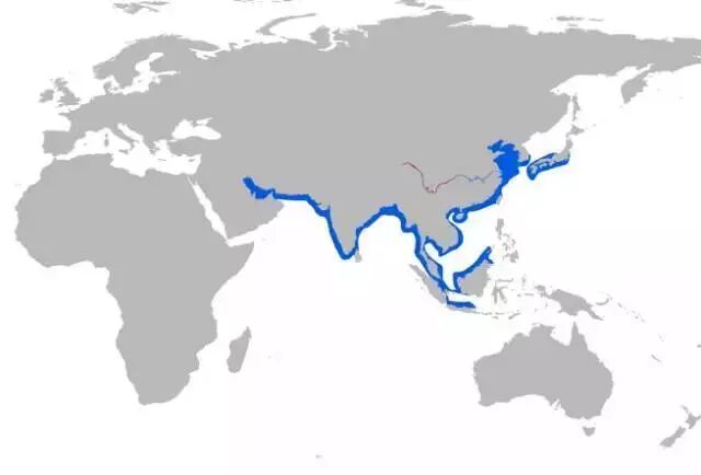 江豚的分布图。图片:玖巧仔 / wikipedia