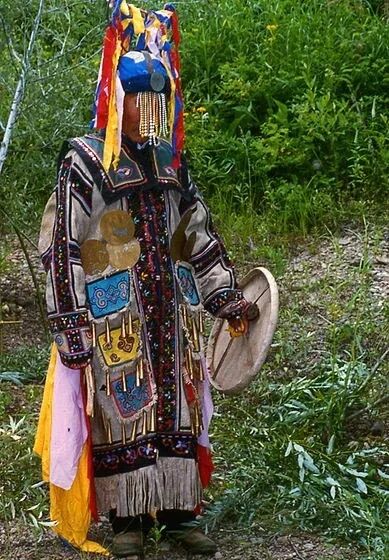 鄂伦春族信仰萨满教,他们崇拜自然,相信万物有灵。图为鄂伦春族萨满。图片:Richard Noll / wikipedia