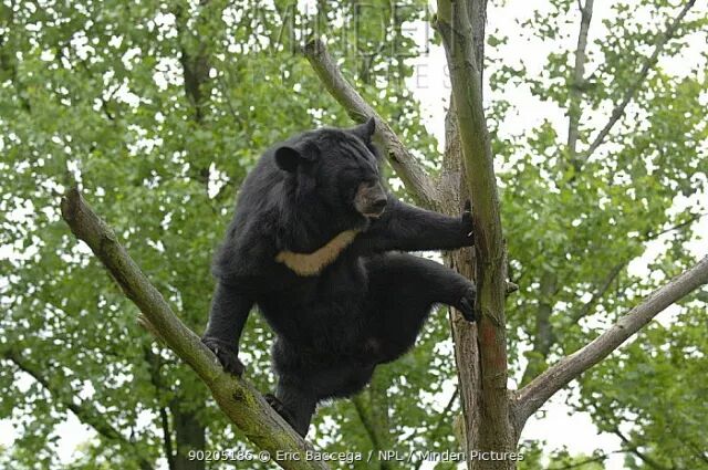 爬树的亚洲黑熊,“熊孩子”气质显露无疑。图片来源:Eric Baccega / NPL / mindenpictures