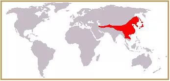 红色所示为亚洲黑熊的分布范围。图片:Jürgen / wikimedia