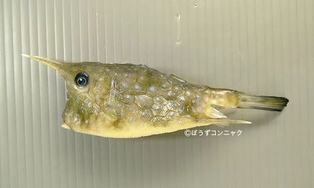 等到长大了,角箱鲀全身就会变成淡褐色,身体前后的棘还越来越大。日本人叫它“金刚河豚”,是说它长得像佛教里金刚手里拿的降魔杵。
