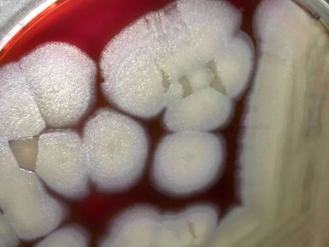 羊血琼脂培养基上的苏云金芽孢杆菌。图片:PHIL / CDC / wiki commons